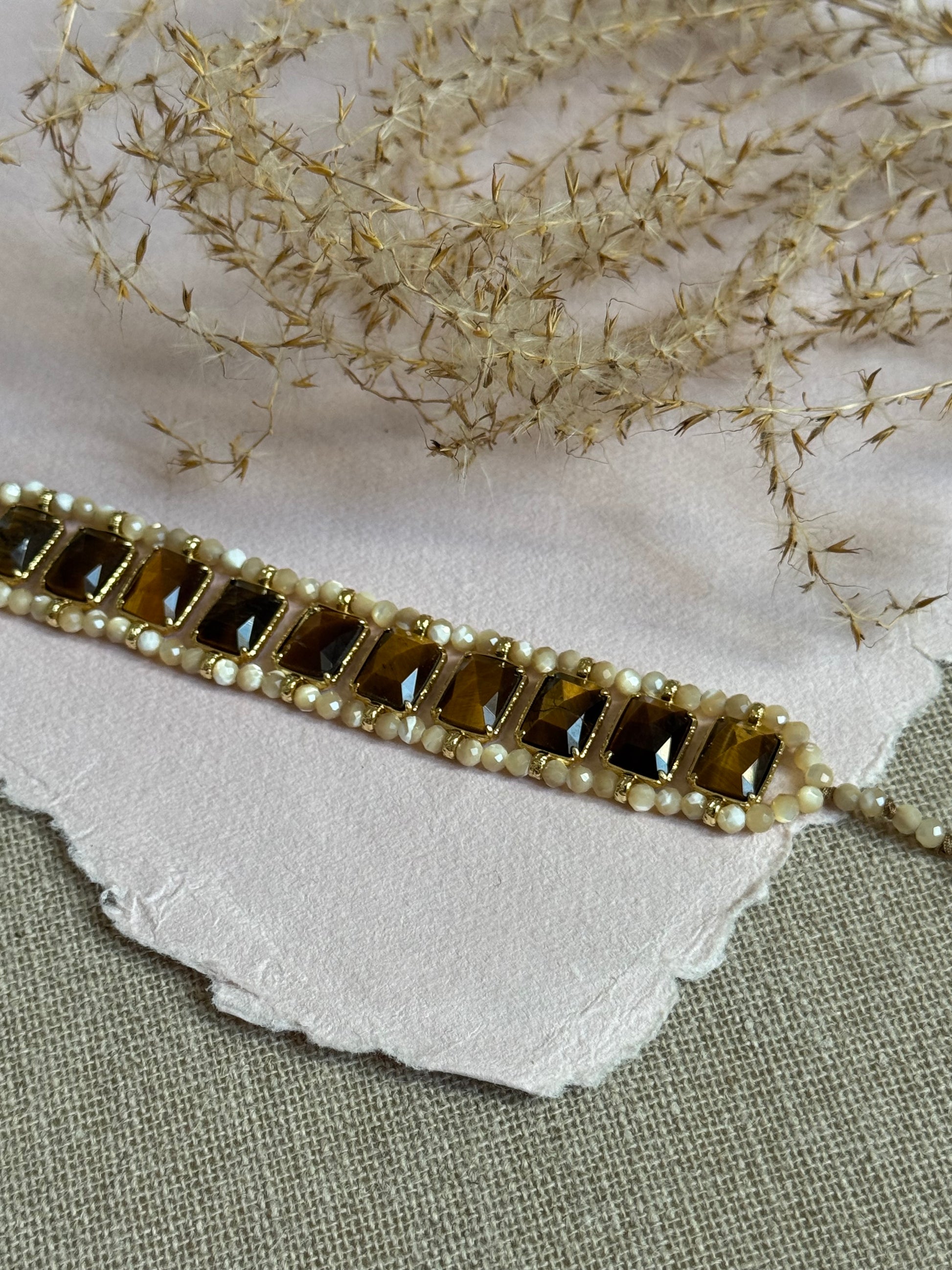 Bracelet en oeil de tigre et nacre