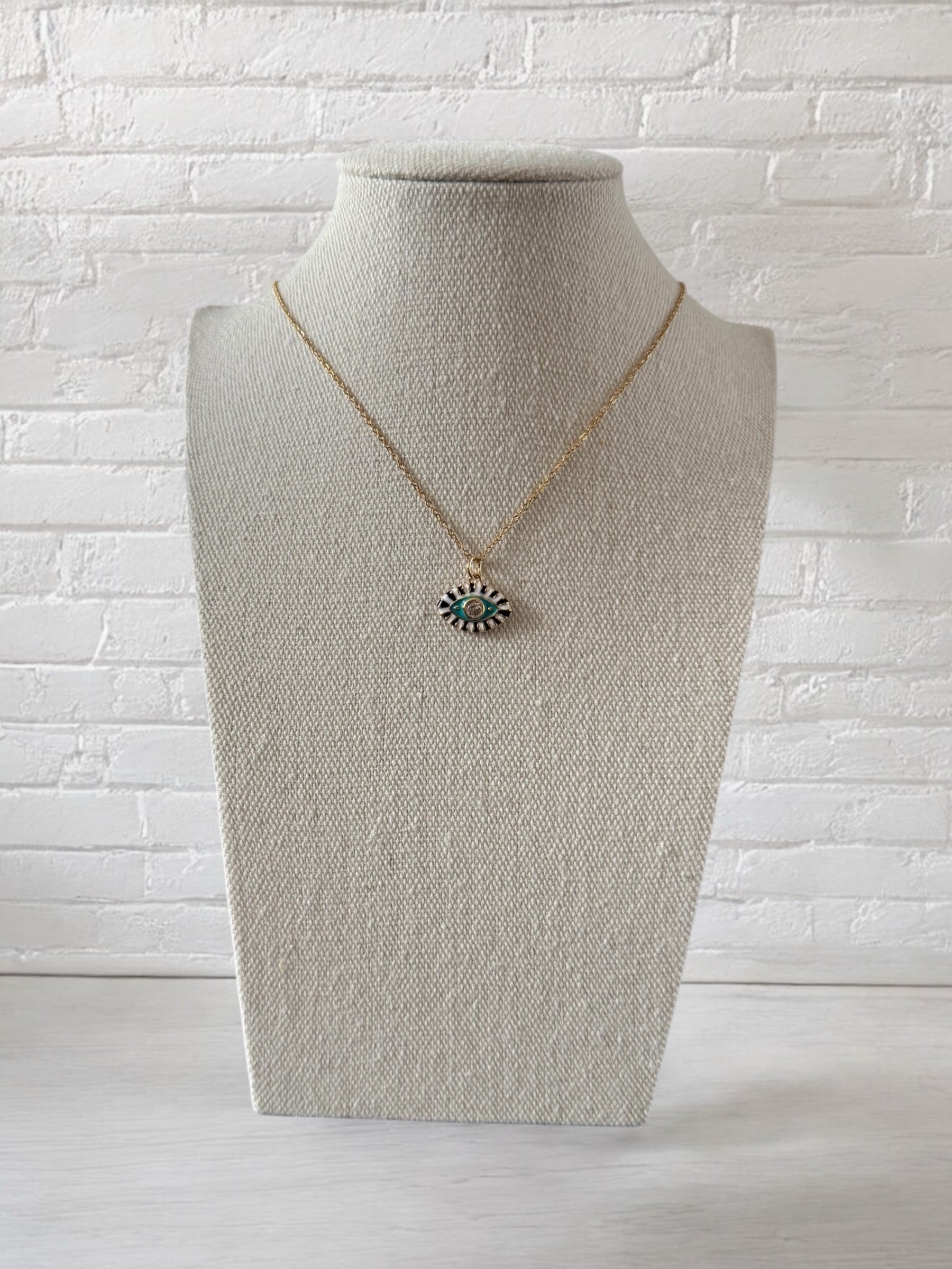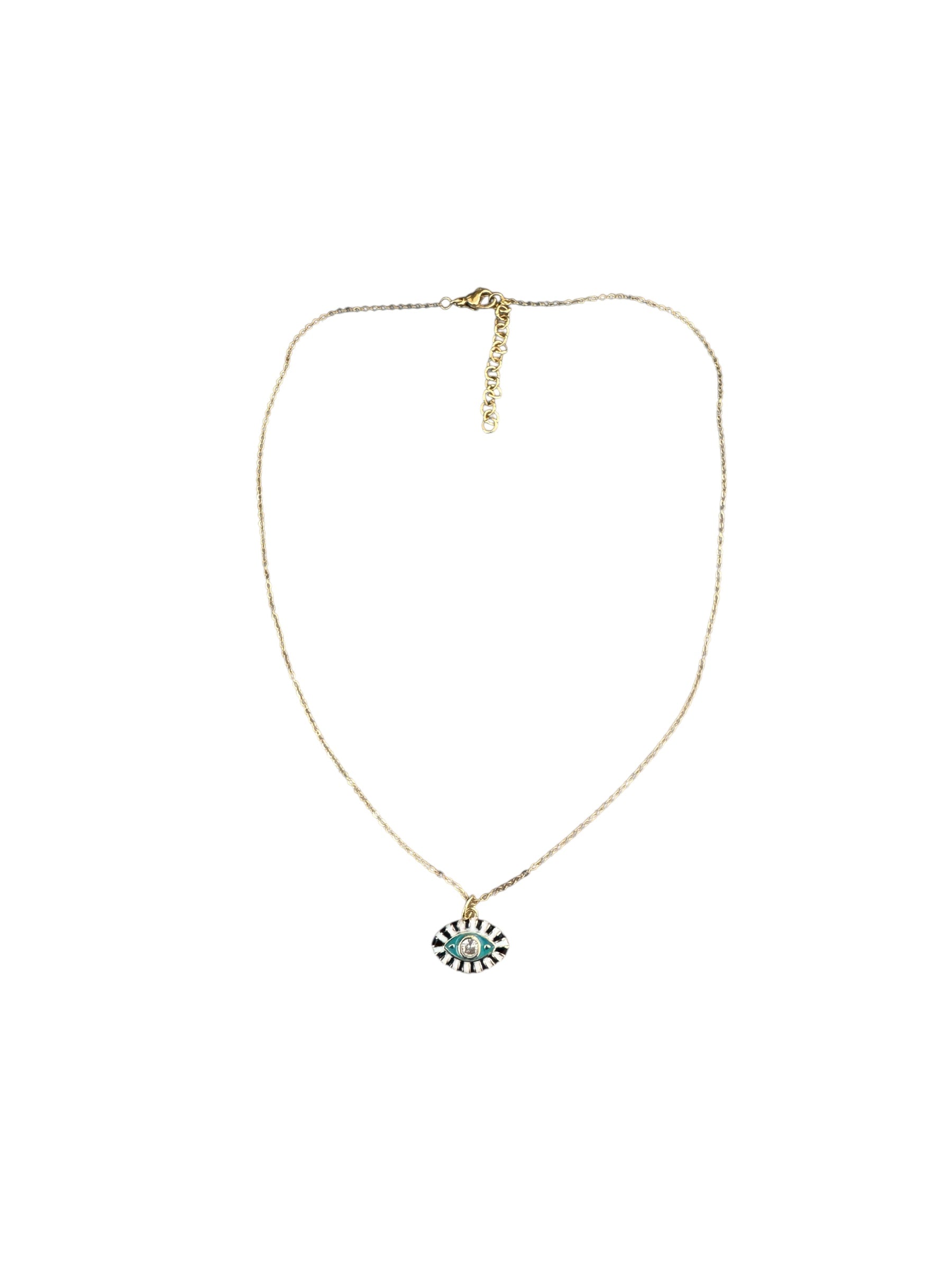 Pendentif oeil émaillé avec zirconium blanc sur chaine en acier inoxydable dorée