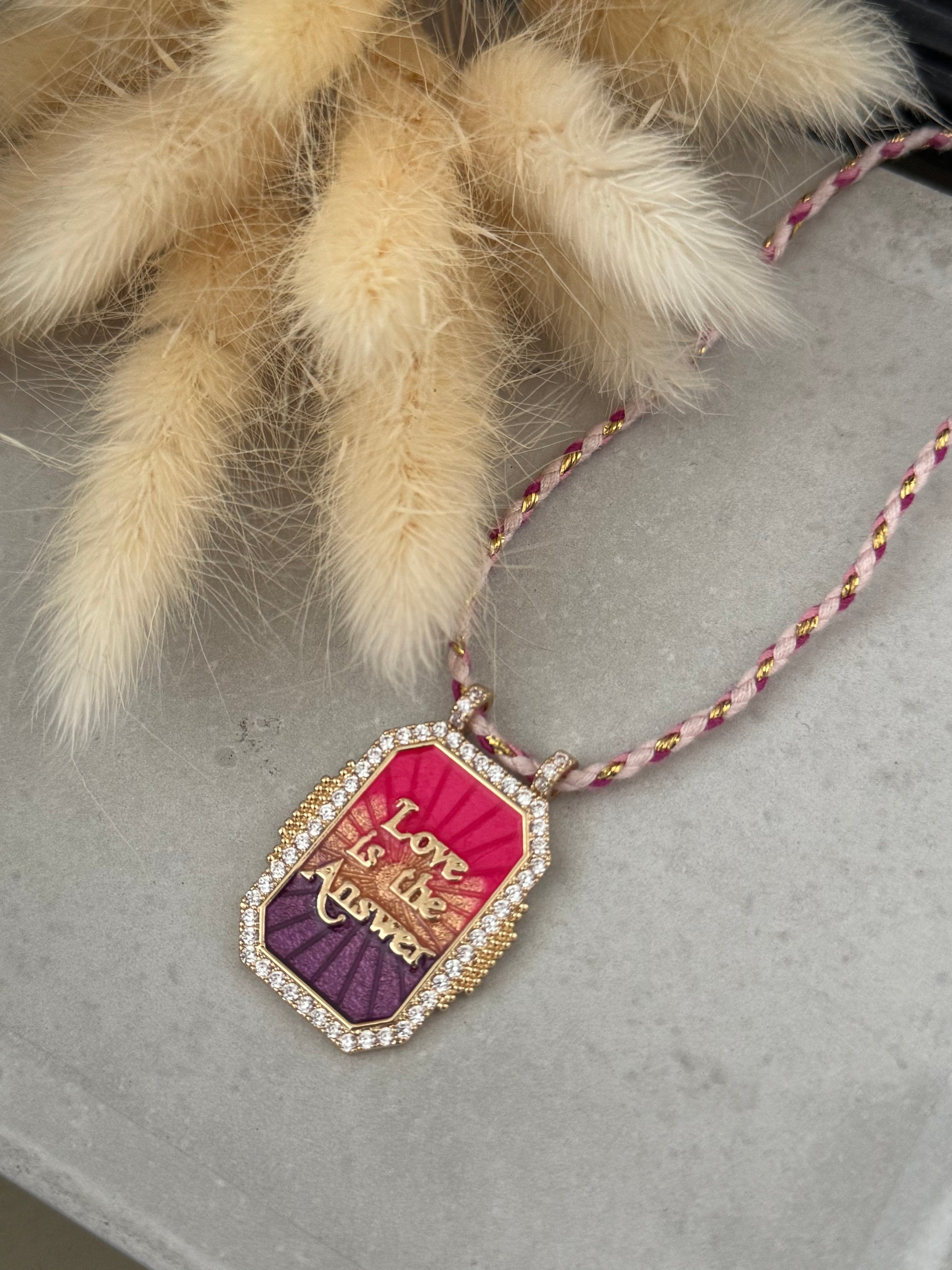 Collier pendentif en acier inoxydable émaillé avec strass sur cordon tressé