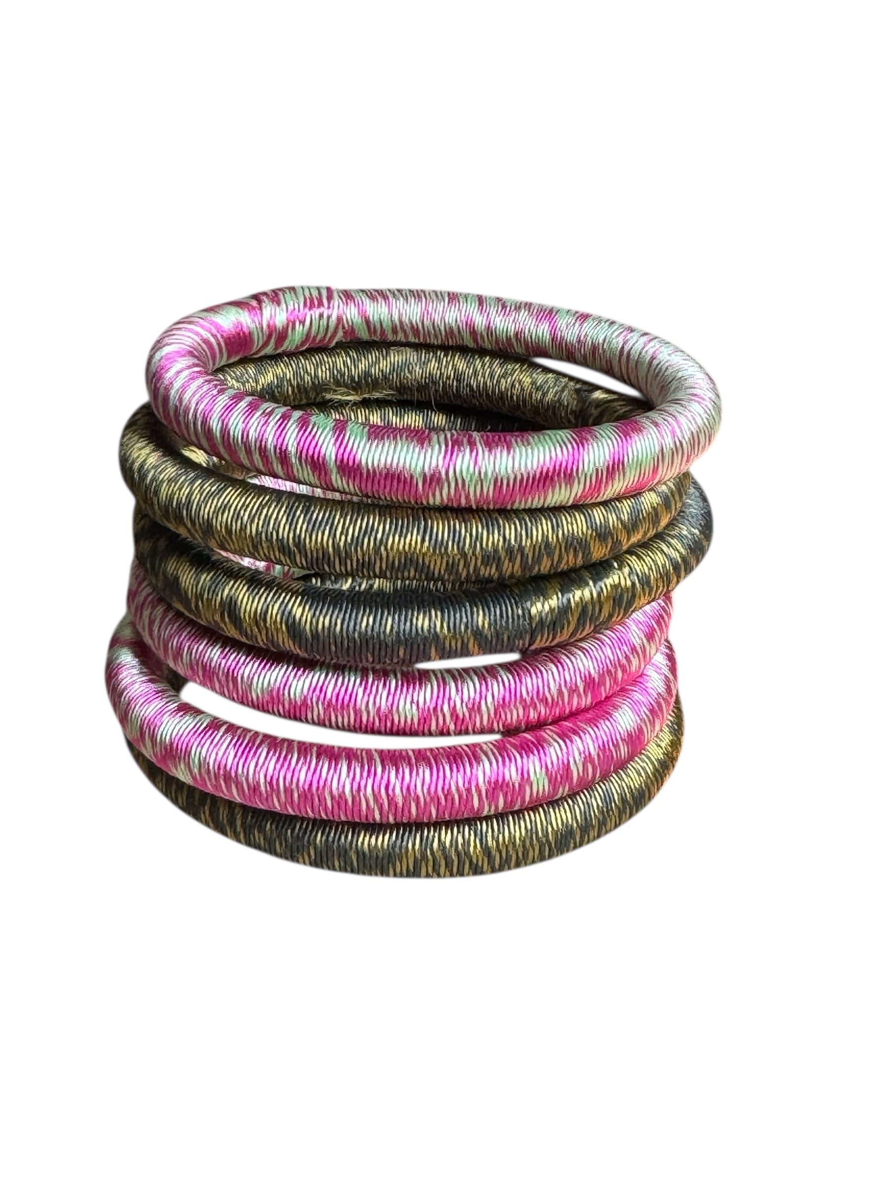 Joncs souples recouverts de fils de soie végétale colorés.